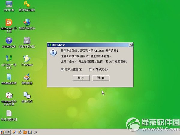 4、完成上述的操作后,在弹出的“UQDGhost”的提示窗口中点击“是”按钮即可,如下图所示: