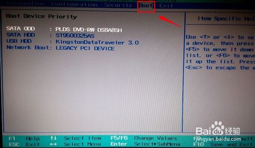 ![]() 联想笔记本WIN7不能u盘启动怎么解决图2 此时看到有很多的设备在这里显示出来。比如我的第一项是DVD启动。如果想把下面的U盘移动到第一位,使用键盘上的下键移动到U盘位置上。再按【F6】调到第一位。这样电脑开机首选启动的就是U盘。
