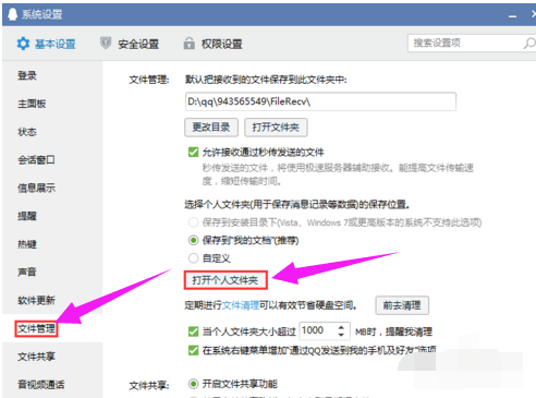 聊天记录电脑图解3 点击“打开个人文件夹”按钮,打开聊天记录文件路径