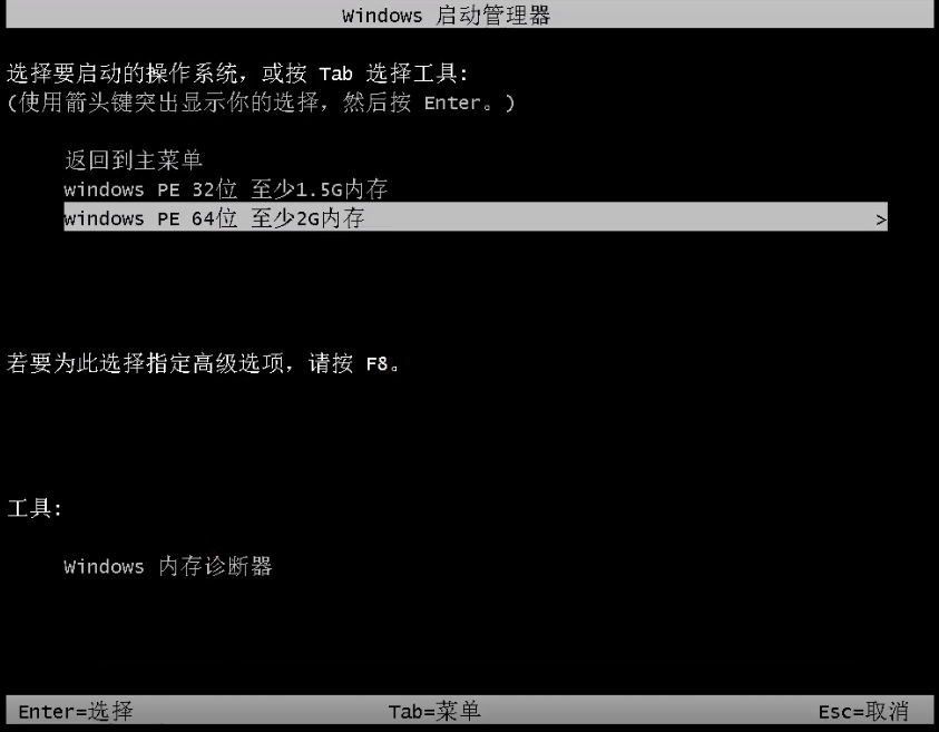 2、根据需要选择对应的PE系统进入,一般选择64位的Windows PE