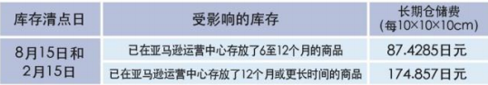 关于在亚马逊运营中心(以下称FC)保管365天以上的库存品,按每10cm×10cm×10cm收取 174.857 日元的长期仓储费用,每半年计算一次,并收取半年的费用。
