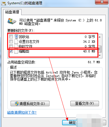 win7开机慢电脑图解2 3、等待一会儿出现如图窗口,选择要删除的文件,点击 确定,删除即可