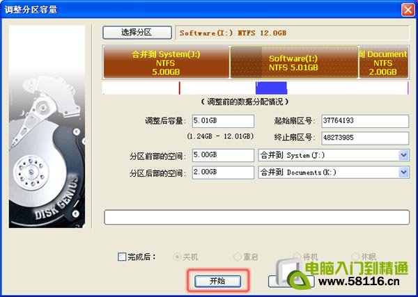 1、 无损分区调整操作,如有涉及到系统分区(通常是C:)时,DiskGenius会自动重启电脑进入DOS模式,并自动运行DiskGenius DOS版来完成无损分区调整工作,分区调整结束后,又会自动重新启动电脑,返回到Windows系统; (电脑入门到精通网 )